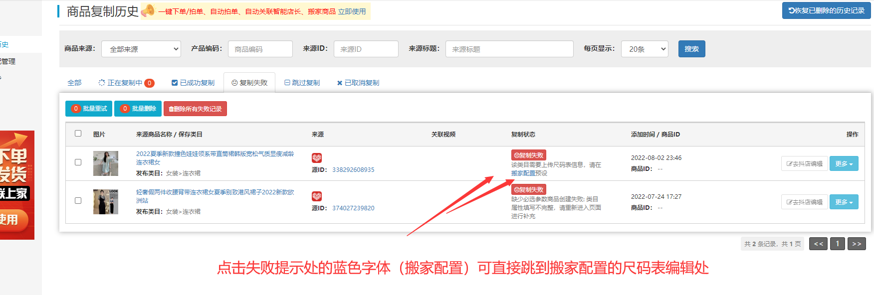 可以在搬家历史这边,点击下图中的【编辑后重试】即可重新复制一遍该商品