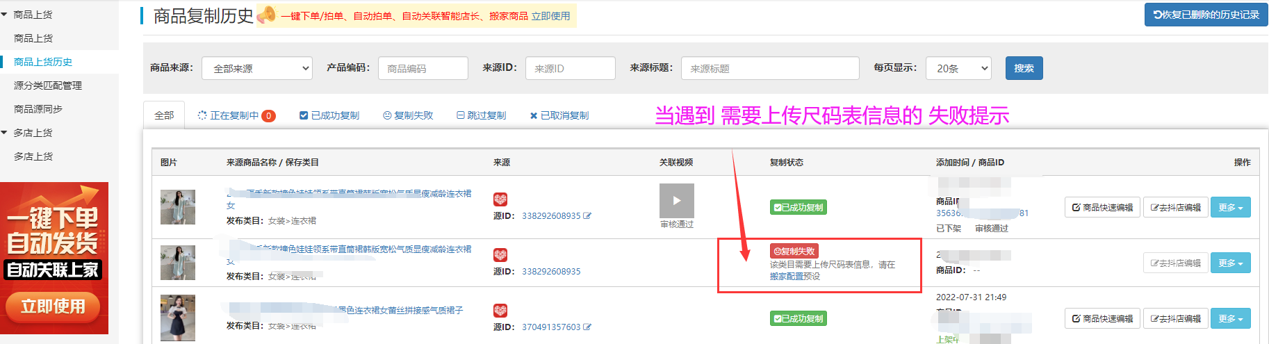 ⑥重新上传复制失败商品