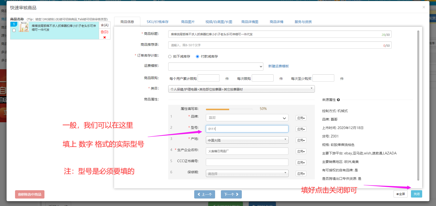- 提示“ 商品属性[型号]填写格式不正确,不支持发布”怎么处理?