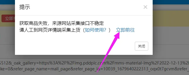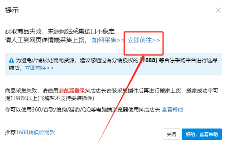 一、出现以下几种获取商品失败的弹窗情况下,可以使用插件采集商品上货